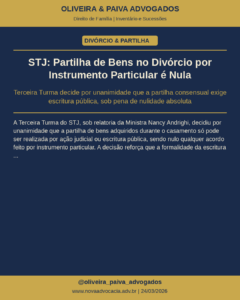 Atualização Jurídica de 22/03/2026 — O escritório Oliveira & Paiva Advogados Associados traz as principais notícias jurídicas da semana nas áreas de Direito de Família